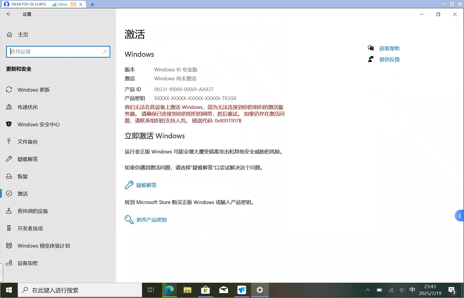 进入更新和安全之后点击激活